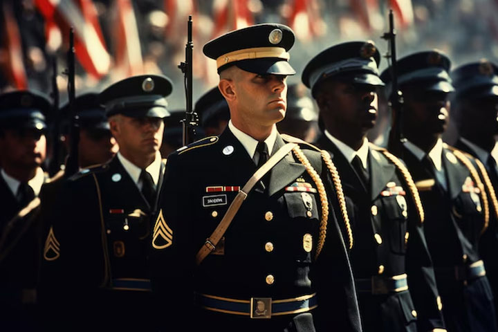 Are you referring to a specific type of military uniform or a general overview? Military uniforms vary greatly depending on the country, branch of service (army, navy, air force, etc.), and purpose (combat, ceremonial, dress, etc.). If you have a specific branch or type in mind, I can give a more detailed description or provide an image. Let me know what you’re looking for!