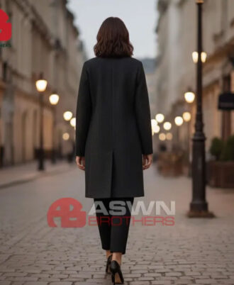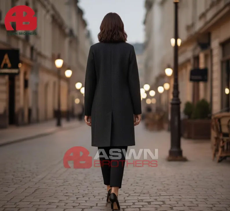 Step into timeless sophistication with our Midnight Elegance Overcoat, crafted for the modern woman who appreciates classic tailoring with refined minimalism.