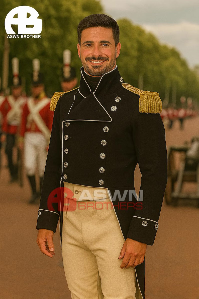 Black: Formal, versatile, and authoritative. Black coats were less common than navy or red in many periods, but were still seen in undress or officers’ wear.