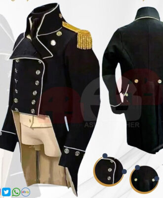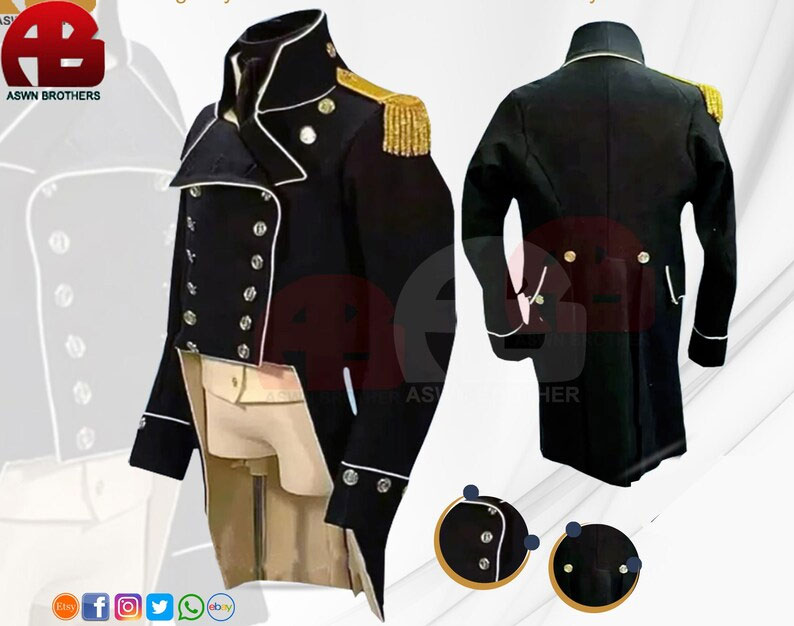 Men’s Uniforms: Napoleonic uniforms, Regency coats, Hussar jackets, Gothic coats, French uniforms, Inverses capes, Civil War uniforms, custom-tailored suits, pirate coats, clergy robes, cassocks, trousers, Halloween specials, movie costumes, smoking jackets, embroidered jackets, long coats, waistcoats, medieval gear, frock coats, Bavarian jackets, 18th & 19th-century uniforms, historical reenactment & cosplay uniforms, and steampunk jackets.