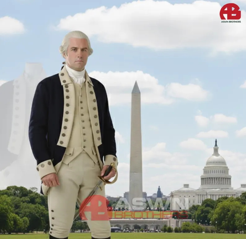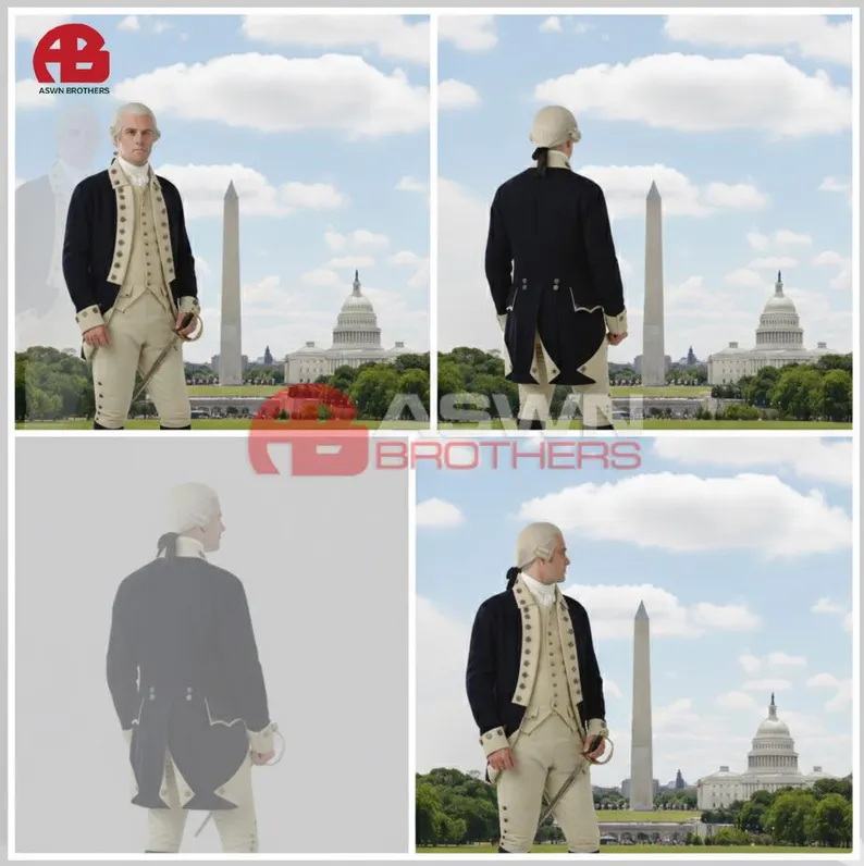 Perfect for historical reenactments, theater productions, museum displays, or period fashion collectors, this uniform represents the noble style and spirit of the late 18th century. Its blend of craftsmanship, authentic fabrics, and fine detailing makes it a timeless statement of heritage and honor.